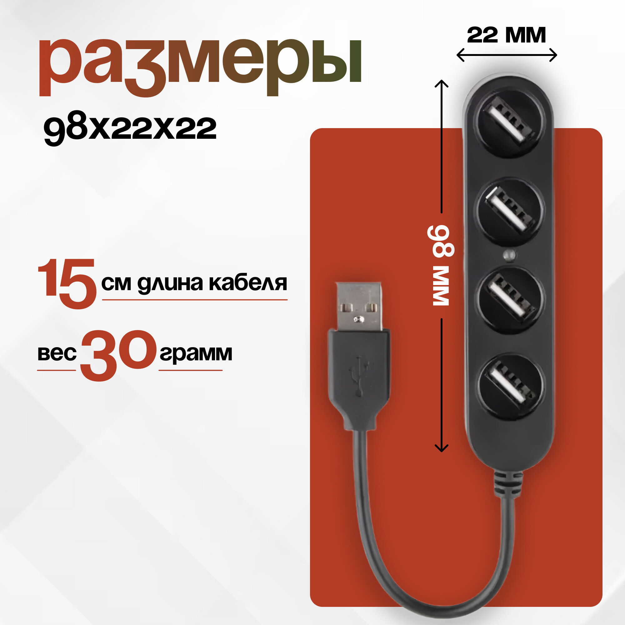 USB разветвитель на 4 порта, USB-HUB, USB- ХАБ для любых устройств (Длина кабеля 15 см) интересное:
