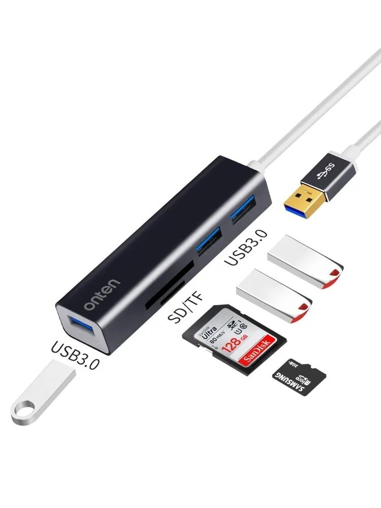 Разветвитель адаптер переходник USB 3.0 HUB Хаб картридер Onten OTN-5223 5в1 3 порта+SD/TF темно-зеленый интересное: