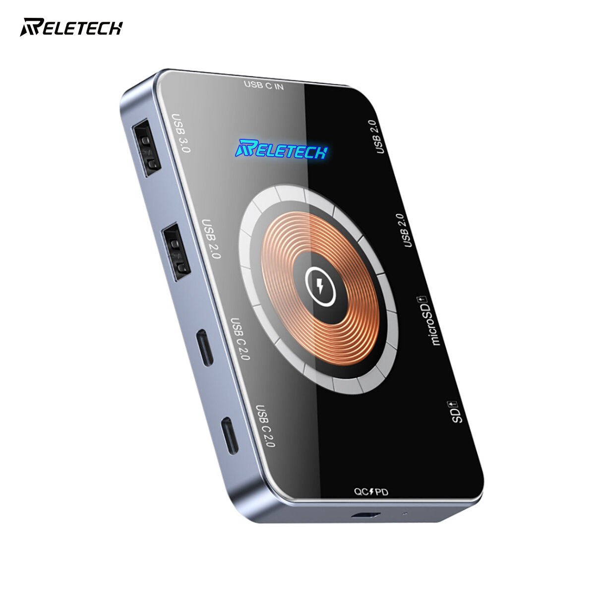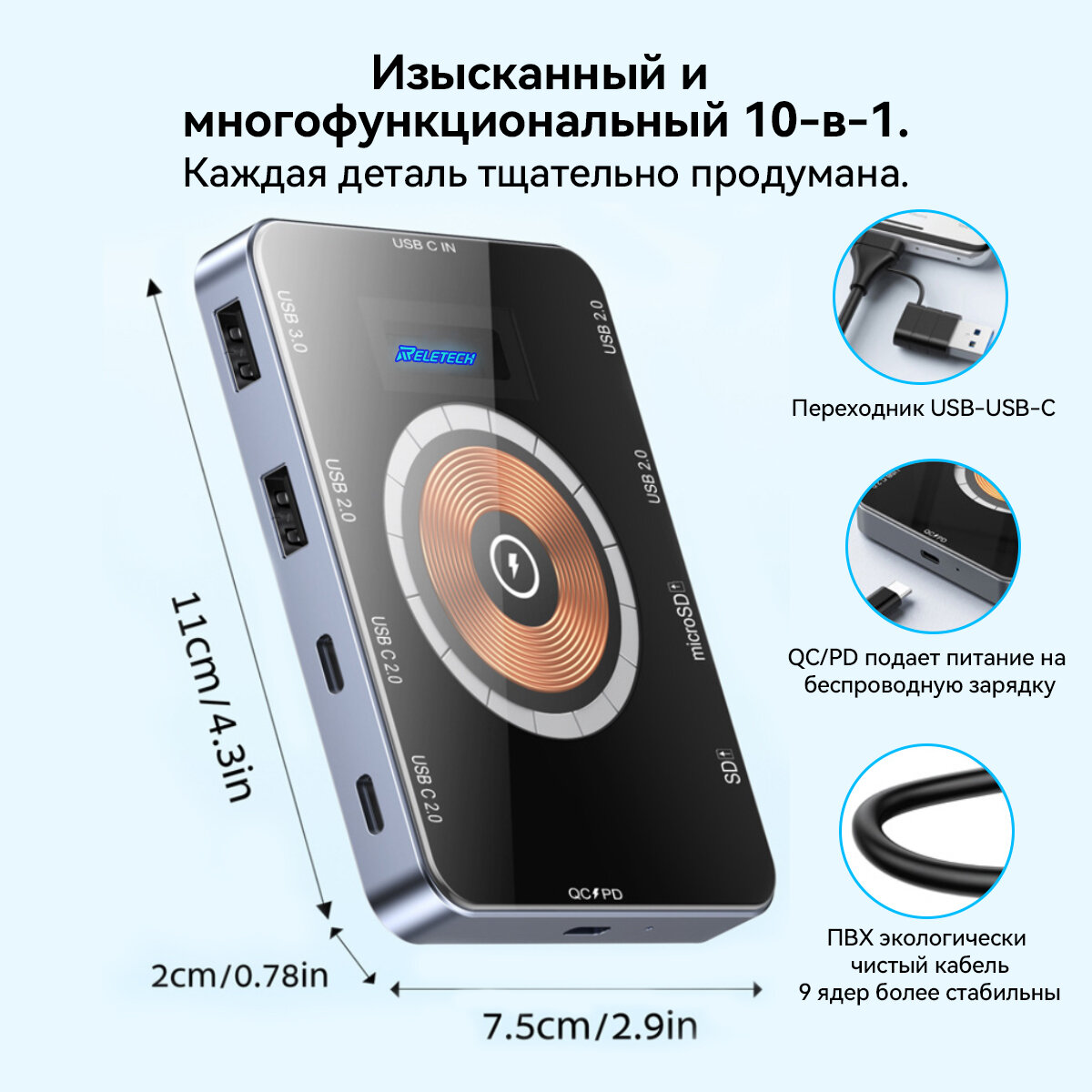 HUB Концентратор USB - C 10 в 1 / USB 3.0, USB 2.0x3, , USBC 2.0x2,microSD - карты, SD - карты, интерфейс C - PD для зарядки MacBook Pro / Air до 100 Вт с беспроводной зарядкой интересное: