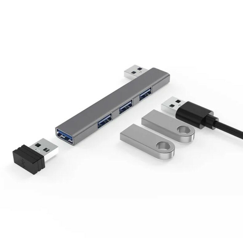 USB-HUB разветвитель 4-Port на 1 USB 3,0 и 3 USB 2,0, корпус метал, цвет серый интересное: