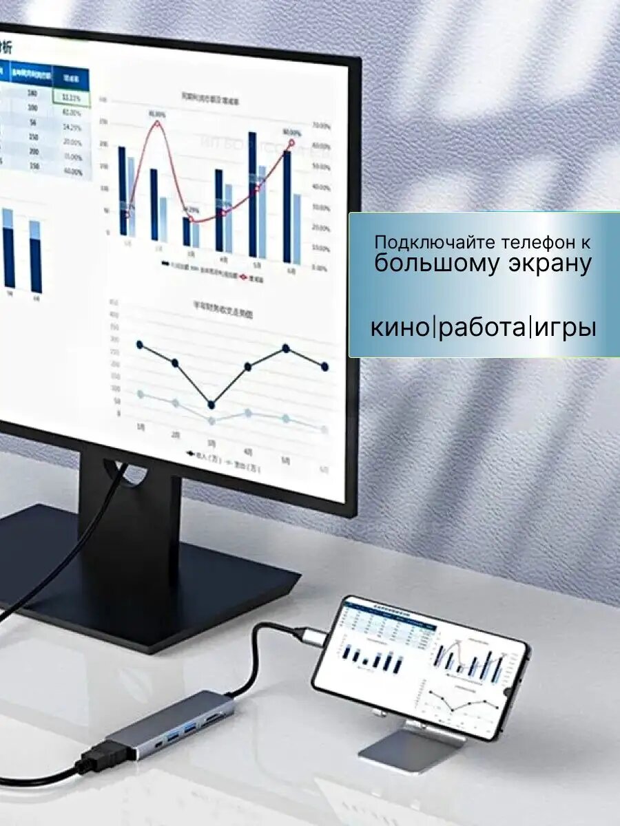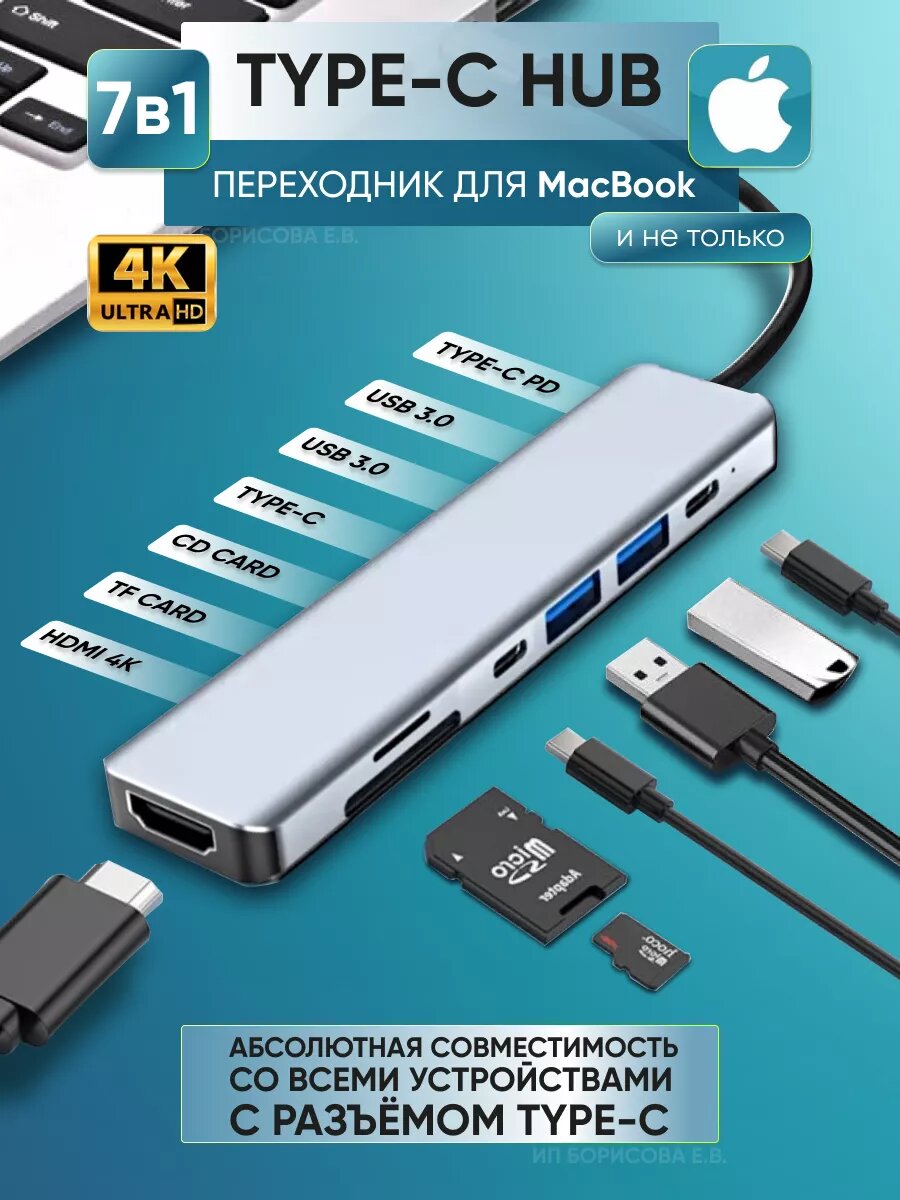 HUB, концентратор для Macbook, Notebook, планшета, Type-C, HDMI, 7в1 интересное: