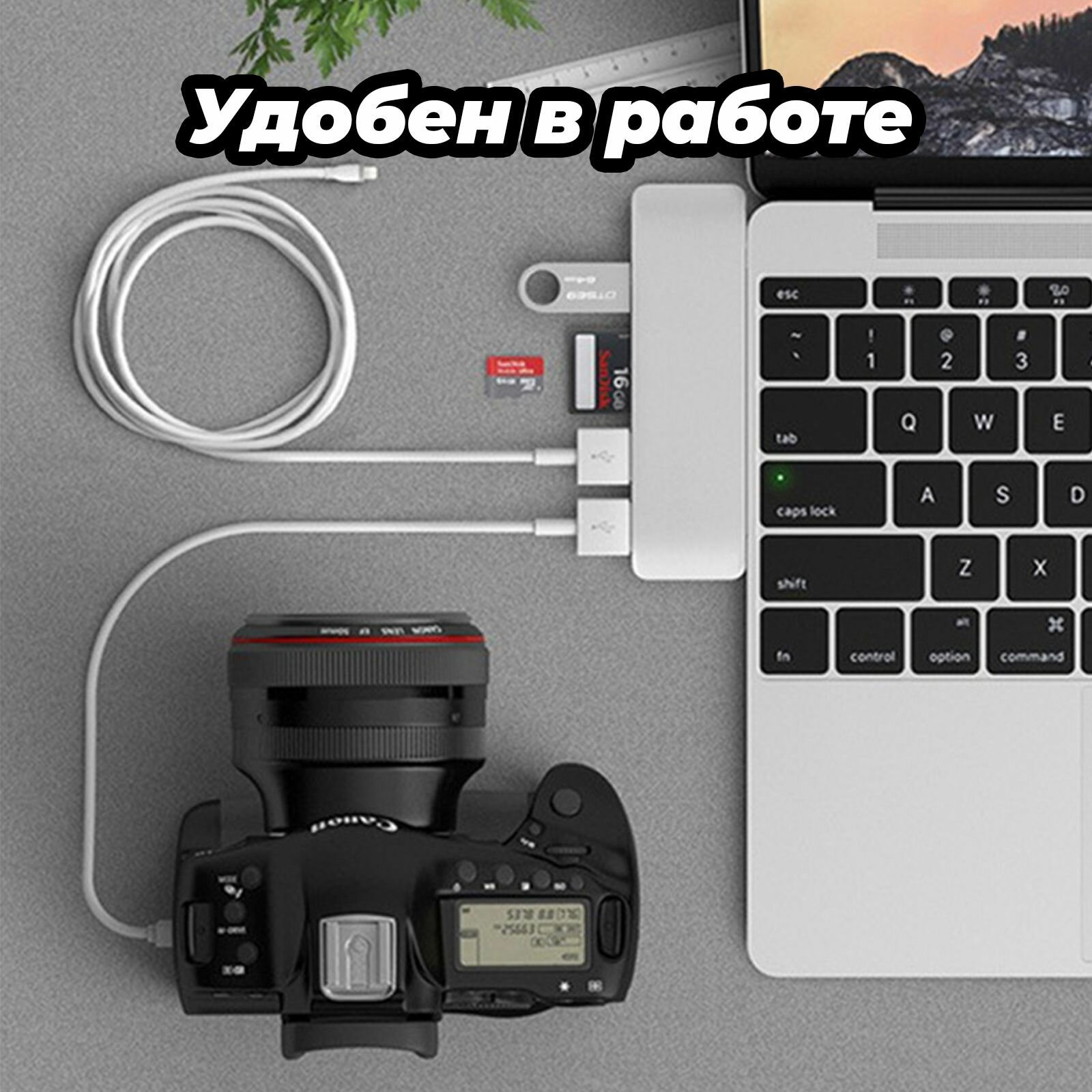 USB / Type-C адаптер 5 в 1 USB, SD, TF, MicroSD HUB картридер для ноутбука и макбука
