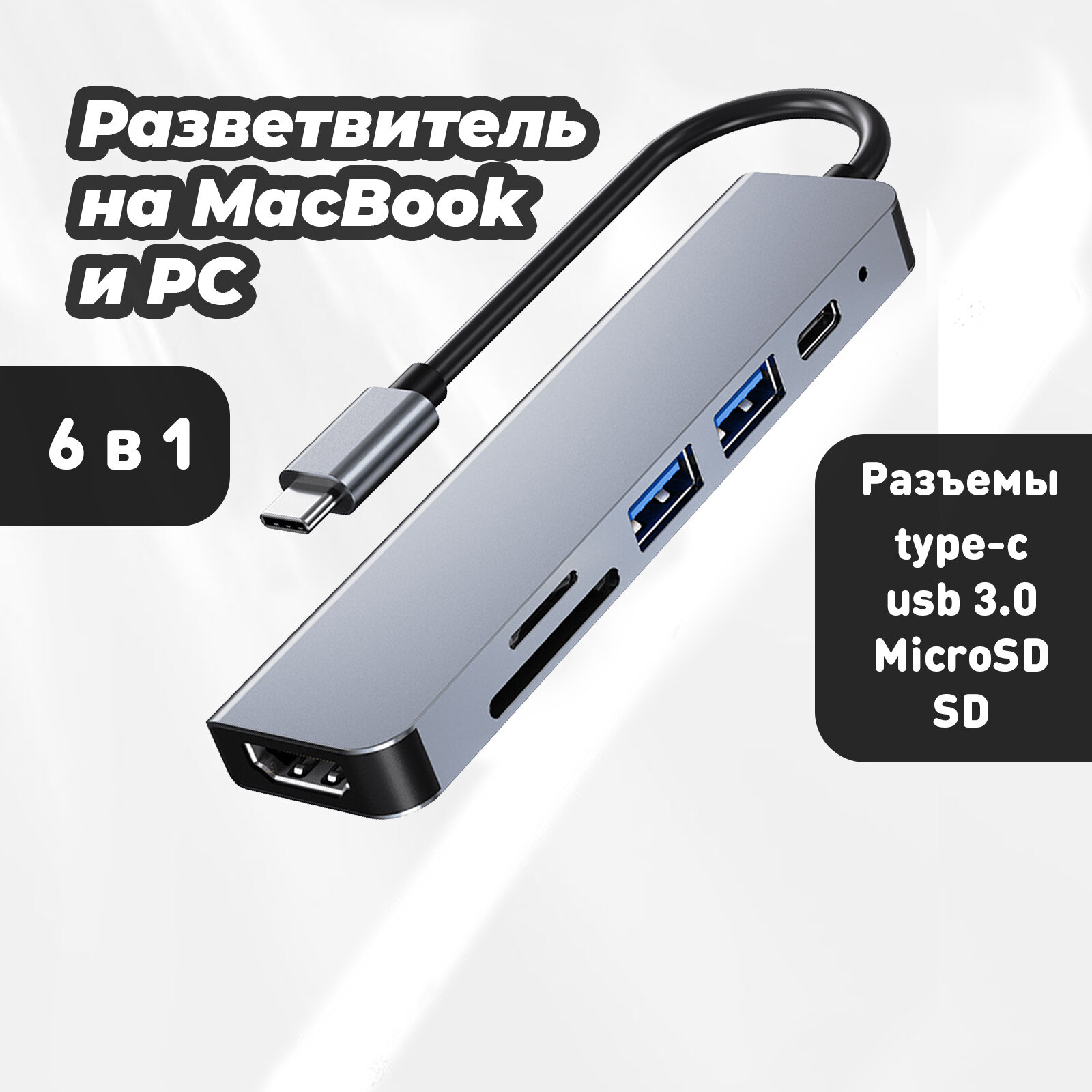 Купить USB разветвитель адаптер 6 в 1 USB HUB HDMI Type C док станция Usb 3.0 хаб 3 0 переходник концентратор адаптер TF SD картридер для ноутбука для макбука hdmi USB-2.0 Type-c. USB 3.0
