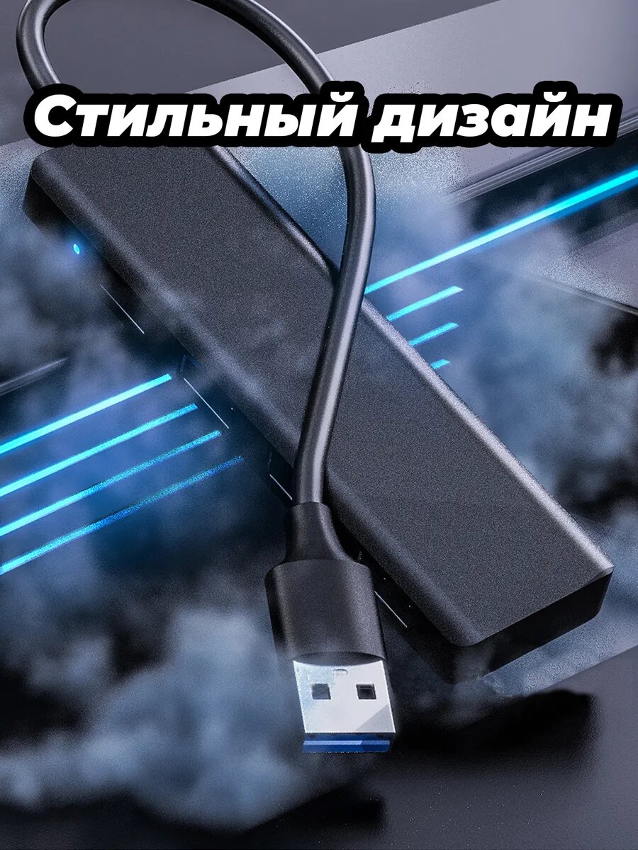 Купить Переходник для Macbook и ноутбука usb Hub 4 в 1 длина 12 см, черный адаптер