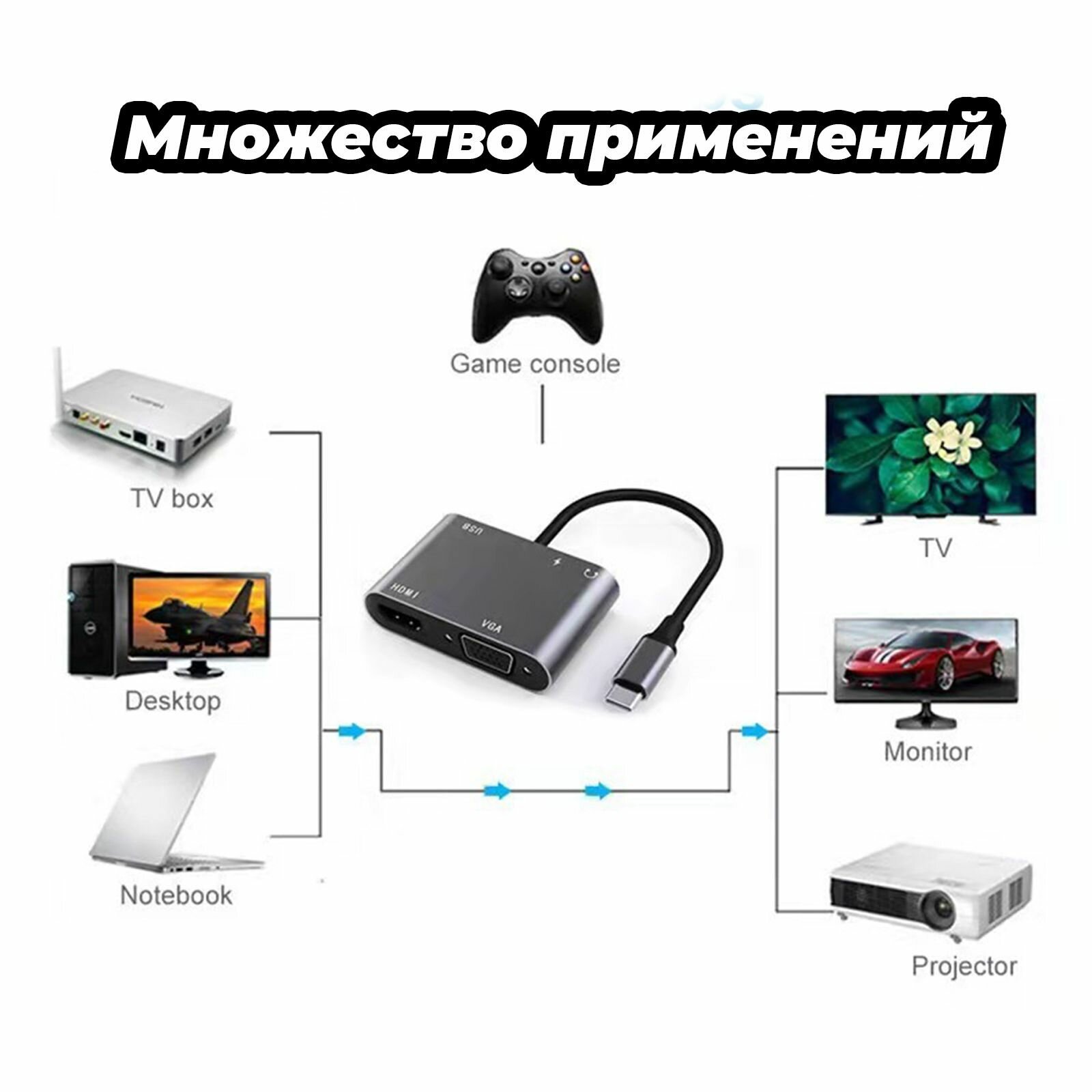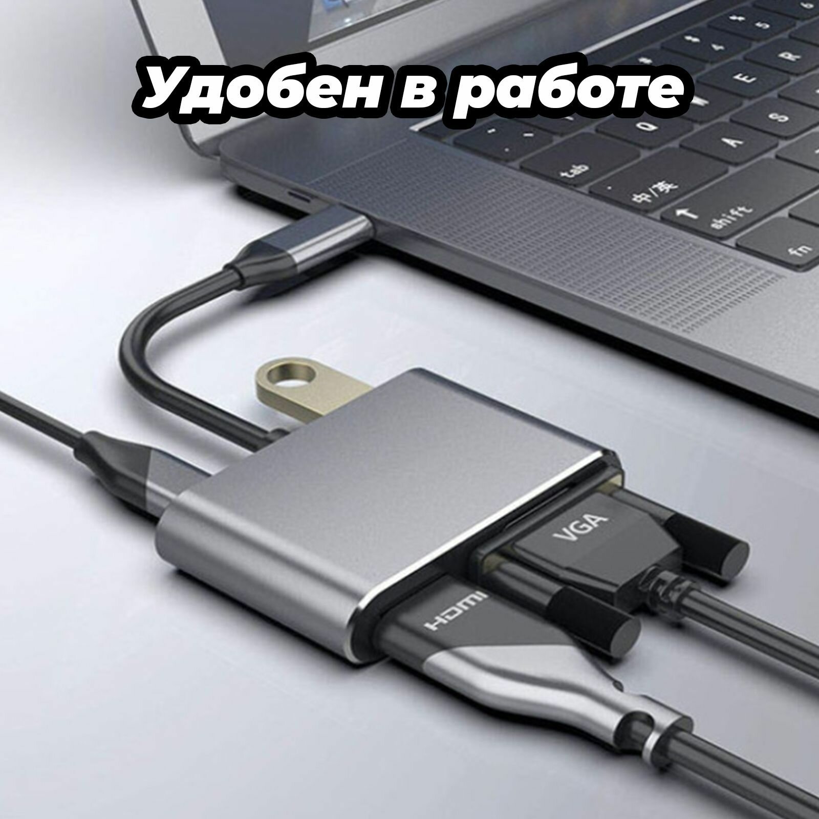Купить Адаптер-переходник (Хаб) 4 в 1 USB-C (Type-c) VGA, HDMI, USB3.0, Type-C