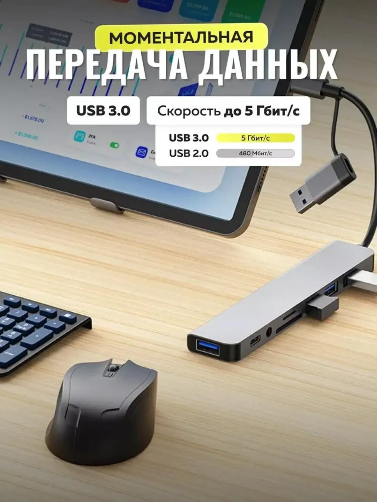Разветвитель USB 8в1/USB концентратор 8в1/USB HUB/Type C/Док-станция, HDMi, картридер/USB 3.0 , USB 2.0/Переходник USB интересное: