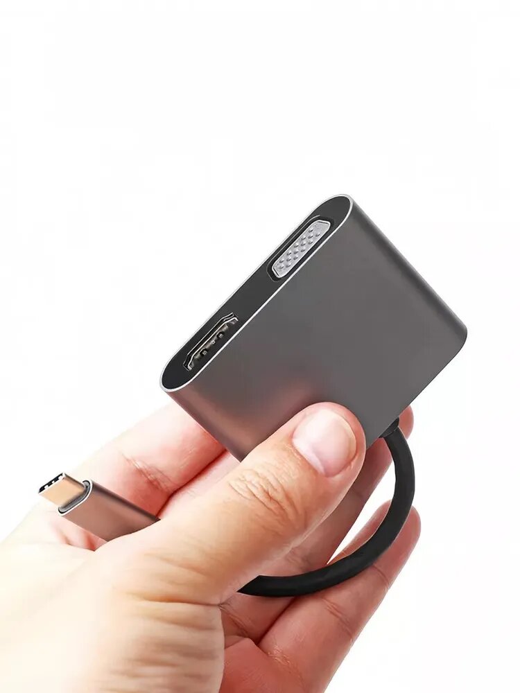 Купить Type-C Hub/Переходник адаптер для ноутбука 4в1 HDMI VGA USB Type-C/Видеоадаптер/Переходник HDMI/Адаптер для компьютера