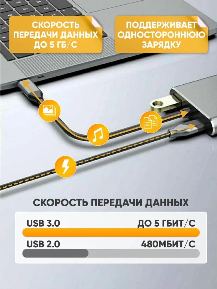 USB-концентратор 7в1 для ноутбука/USB разветвитель/USB хаб 3.0/USB 3,0 USB 2.0 , Type C/Док станция/Разветвитель USB