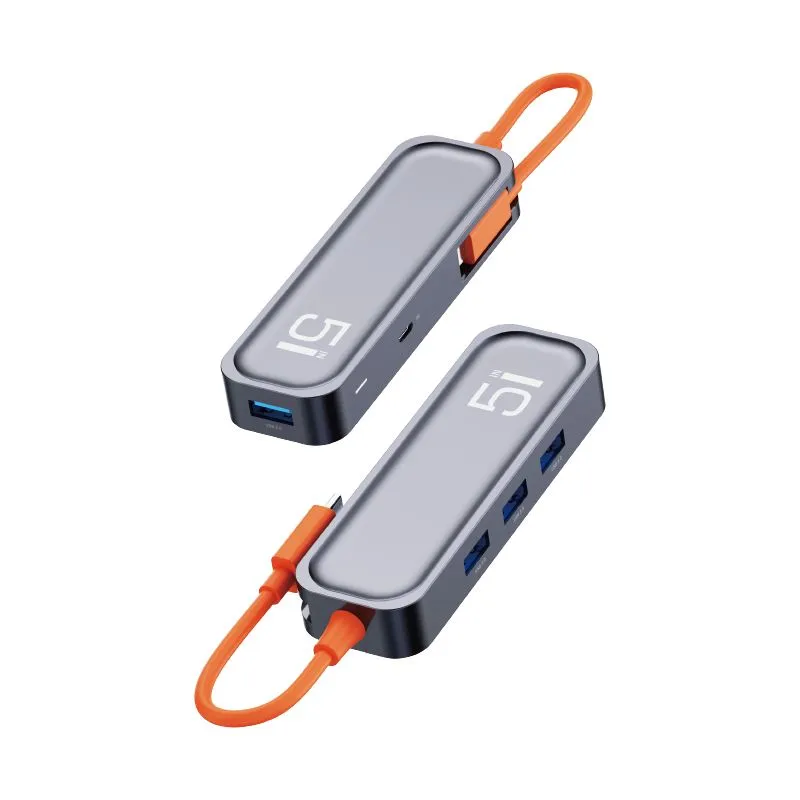 Многофункциональный хаб ROCK TR15 5 in 1 Type-C to USB3.0*4+Micro usb(5V)Docking Station серый интересное: