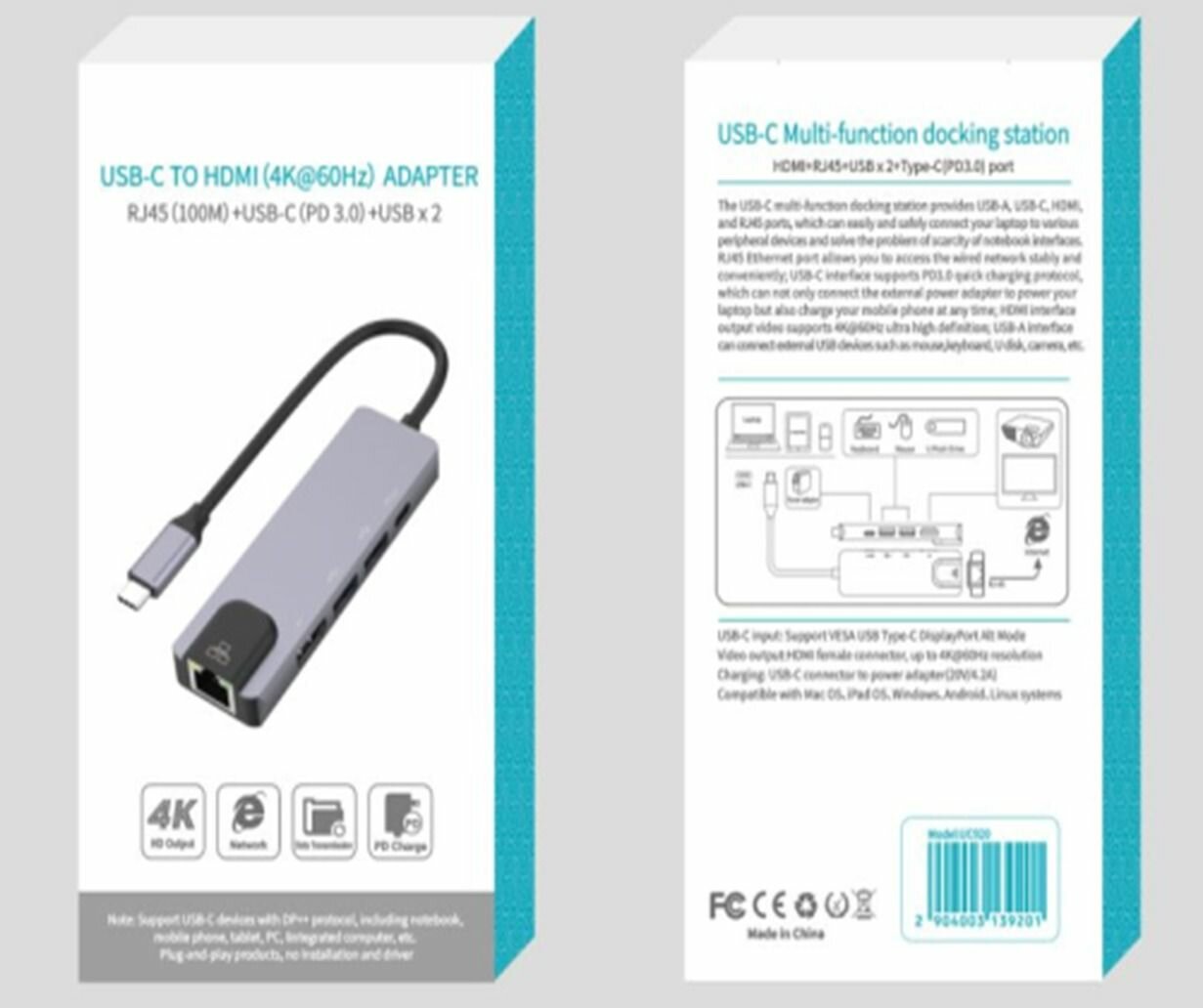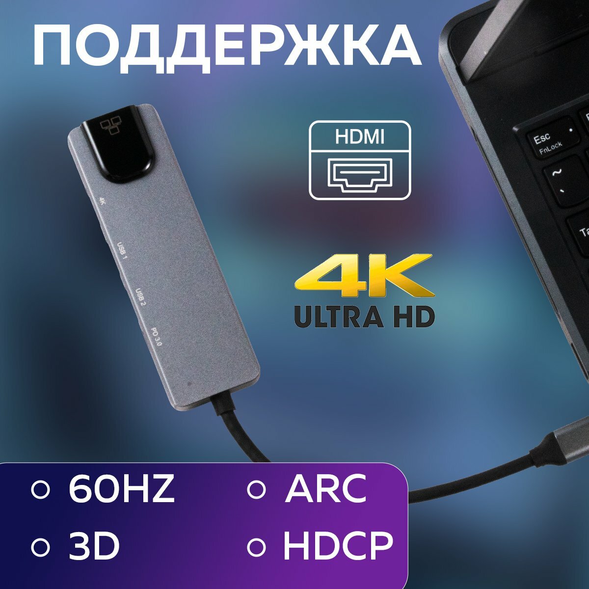 USB-концентратор Type-C Хаб Hub HB23 Easy view HDMI + USB3.0 + USB2.0 + RJ45 + PD