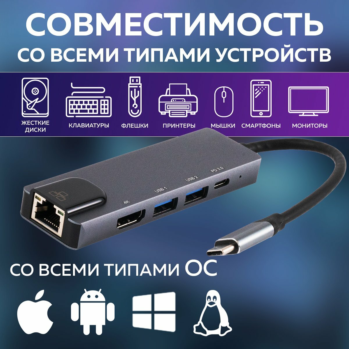 Купить Многофункциональная разветвитель переходник USB-хаб, USB-C, type-c 5 в 1
