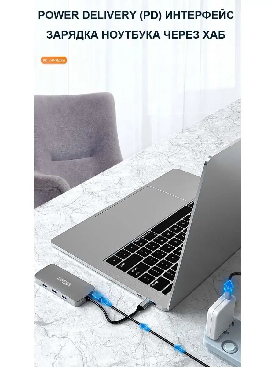 Переходник USB HUB Type-C 10 в 1 разветвитель хаб интересное: