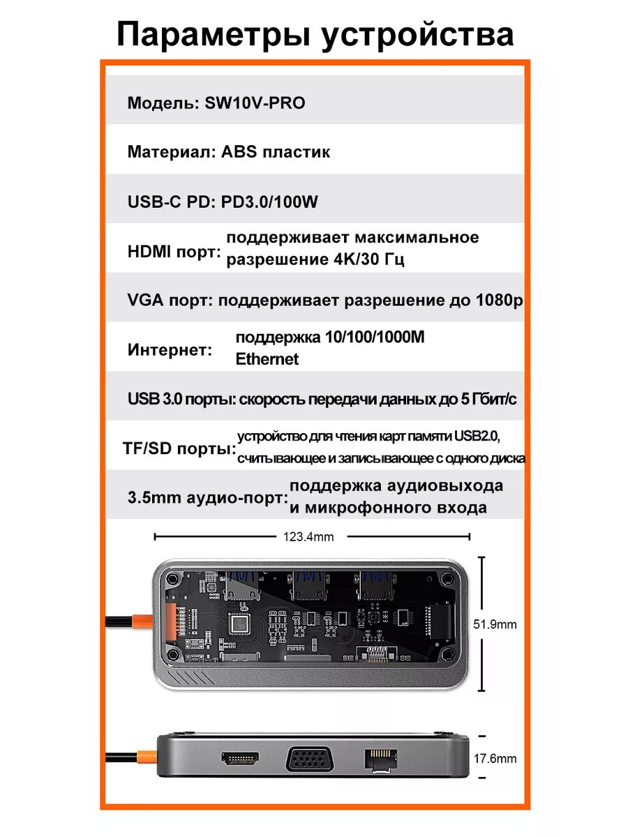 Type-C USB HUB 10 в 1 переходник разветвитель хаб интересное:
