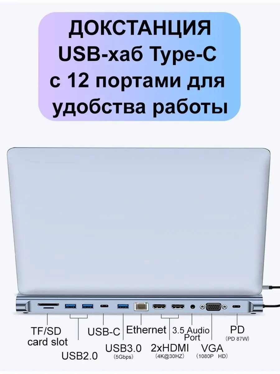 Докстанция для ноутбука разветвитель хаб 12 в 1