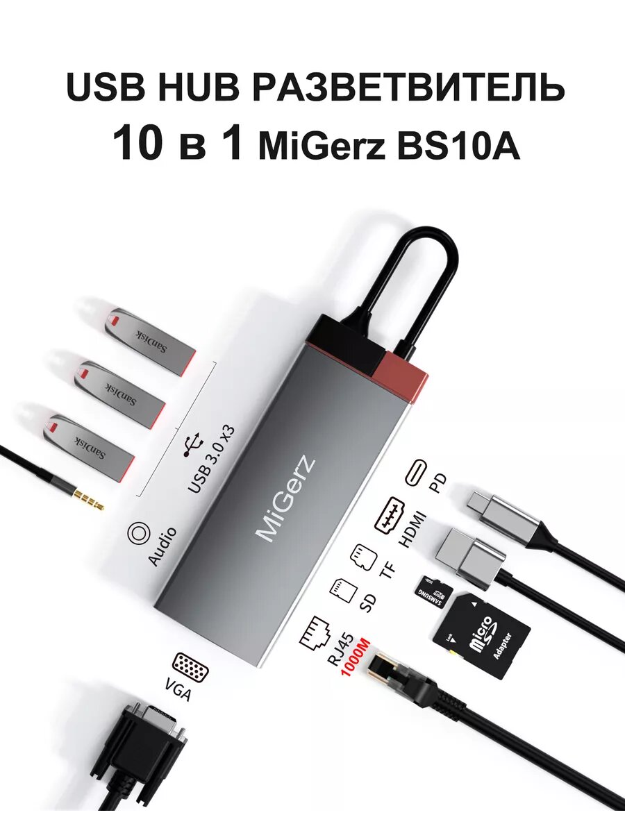 Разветвитель USB HUB Type-C 10 в 1 переходник хаб интересное: