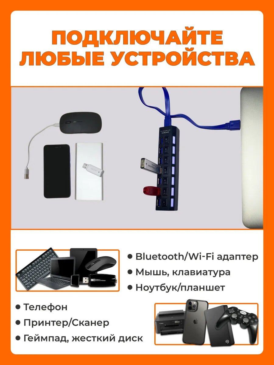 USB Hub Разветвитель 7 портов для ноутбука и ПК
