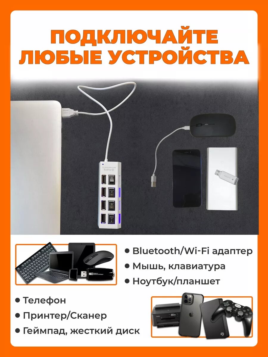 USB Hub Разветвитель 7 портов для ноутбука и ПК