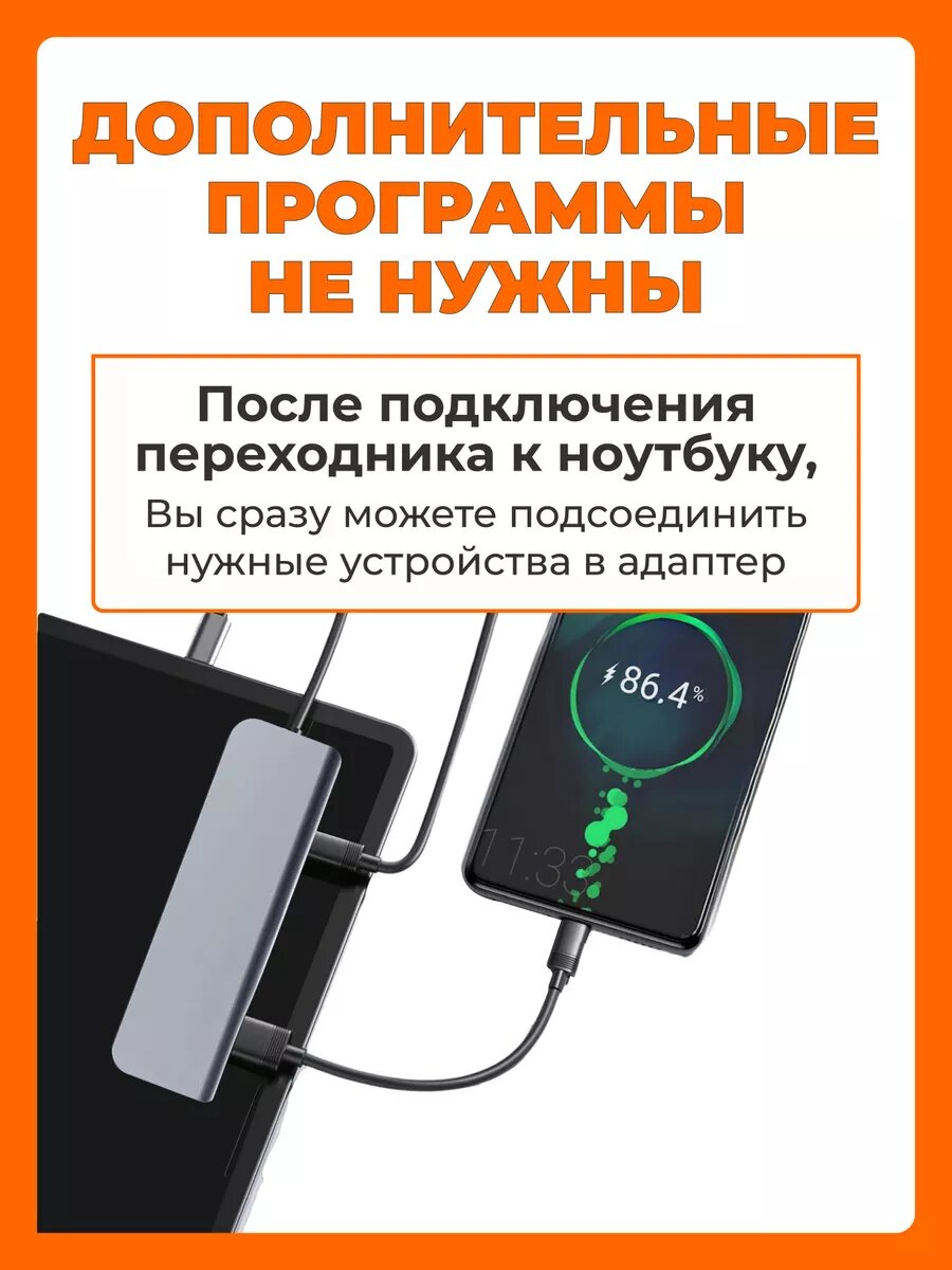 USB Hub 3.0 на 5 портов: USB, Type-C, разветвитель