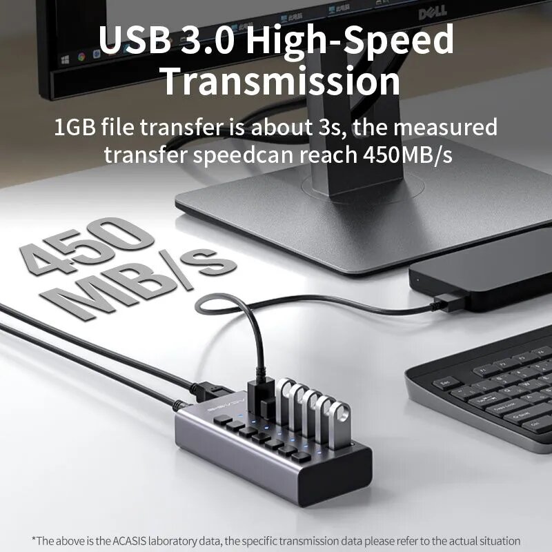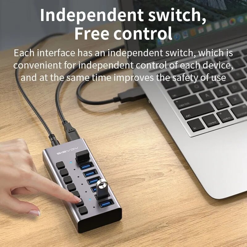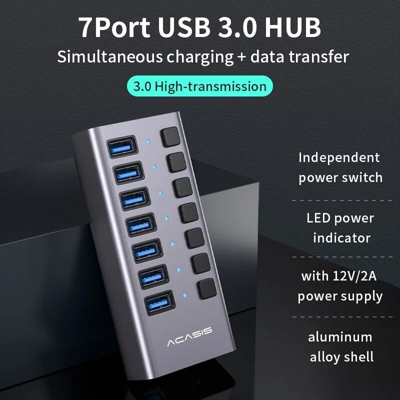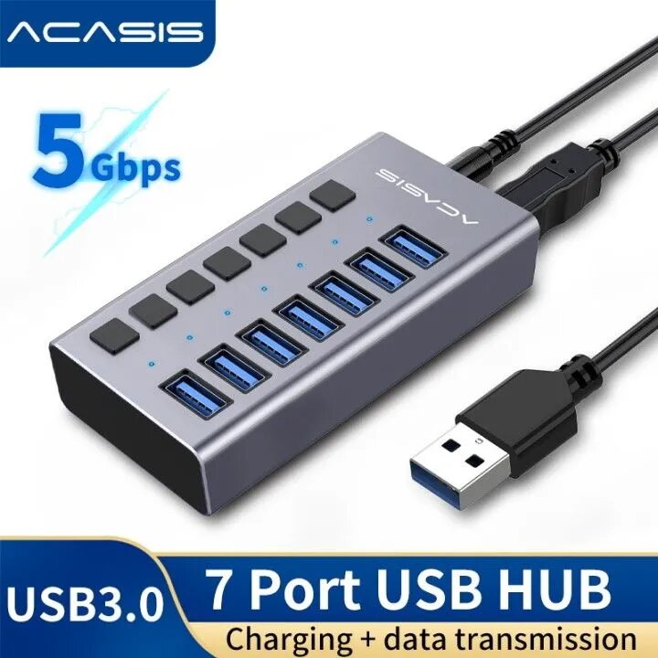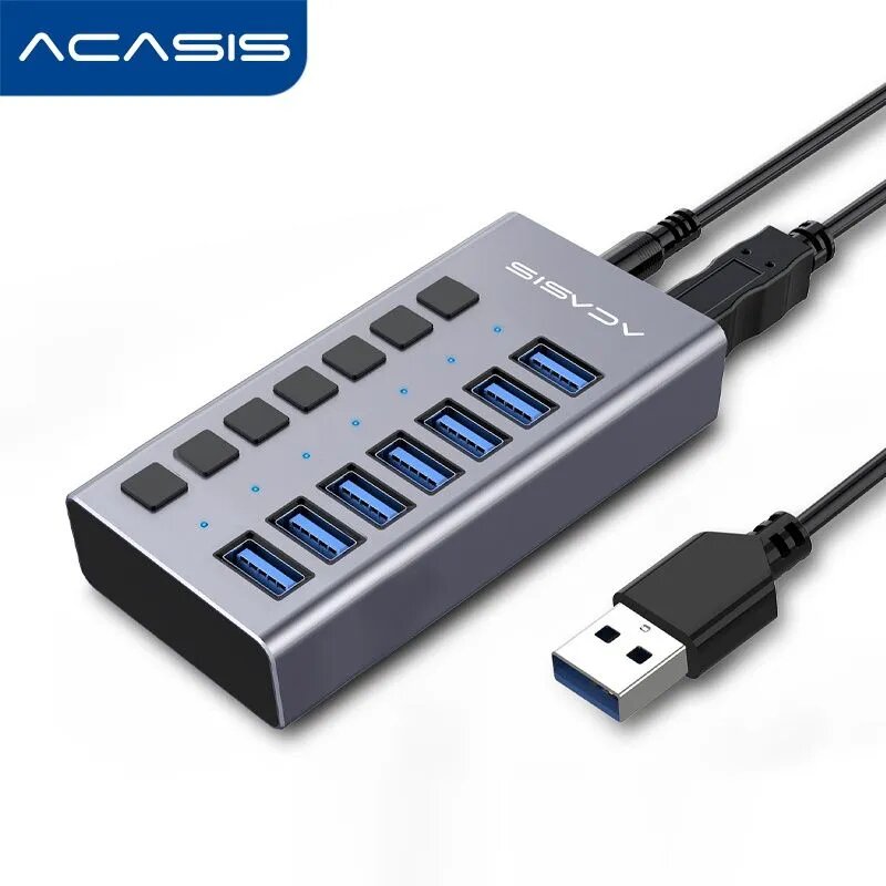 Купить 7-портовый USB-концентратор Acasis, USB-разветвитель USB 3.0, 5 Гбит/с для ноутбука HS-707MG