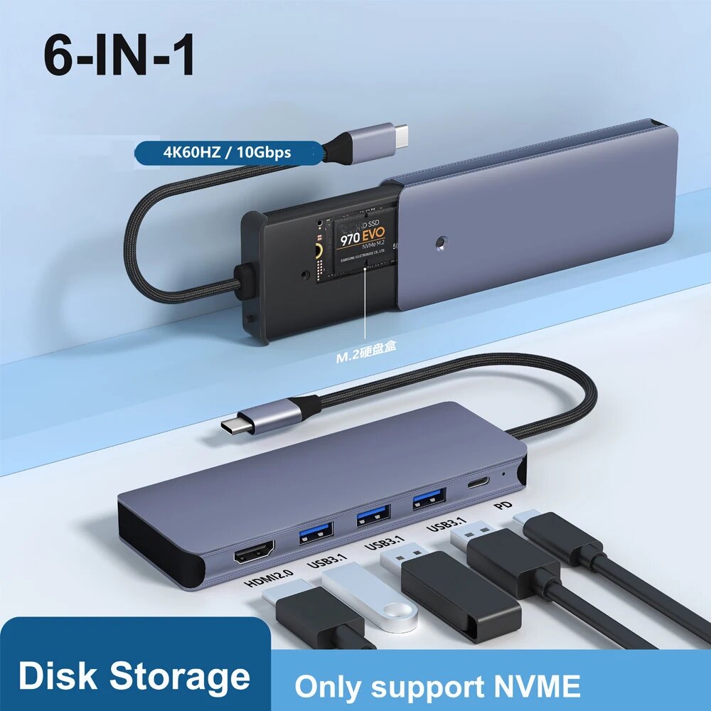 Купить USB концентратор kebidumei 8-в-1 с хранением M.2 SSD, 8-IN-1 SATA NVMe