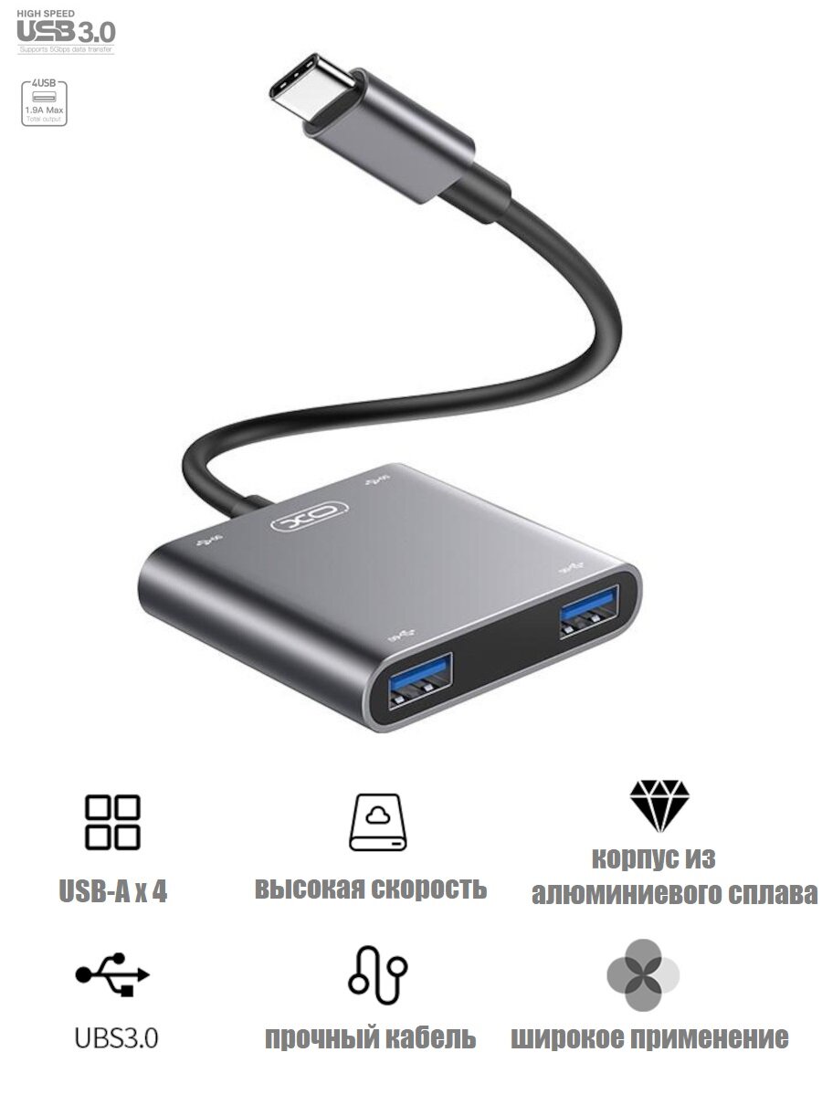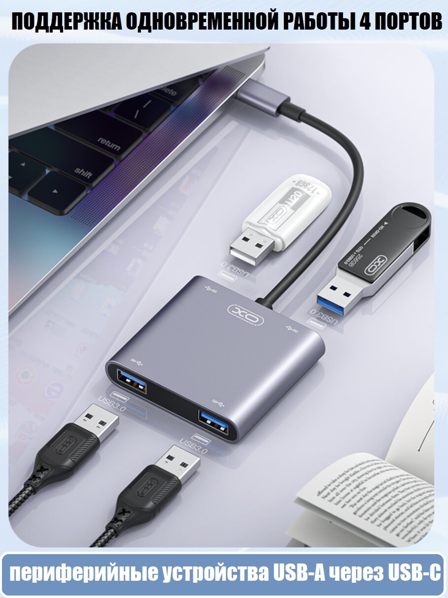 USB хаб USB-C 4в1 4 x USB 3.0 интересное: