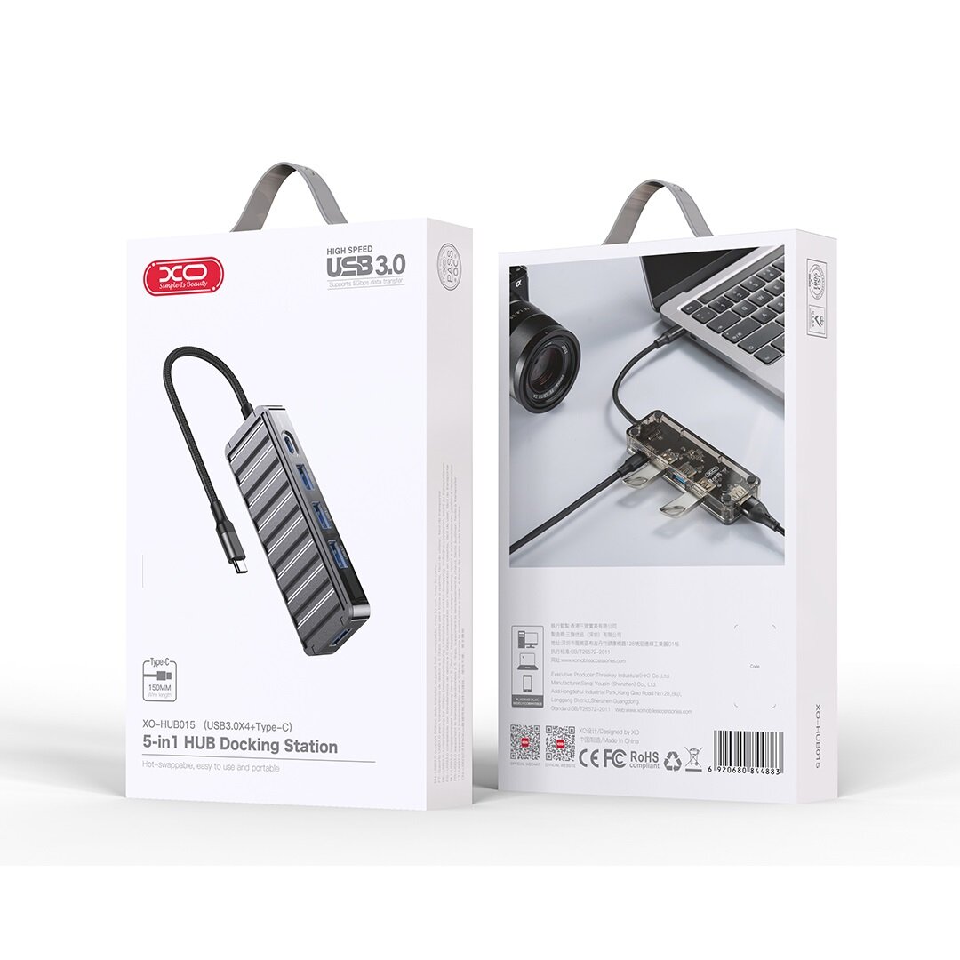 Купить USB хаб USB-C 5в1 4 x USB 3.0, 1 x USB-C для питания