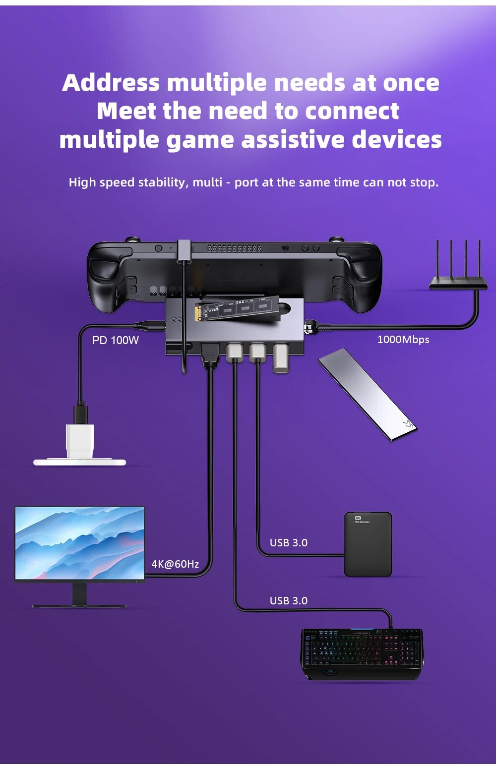 Док-станция 7-в-1 kebidumei для Steam Deck, M.2 SSD for Steam интересное: