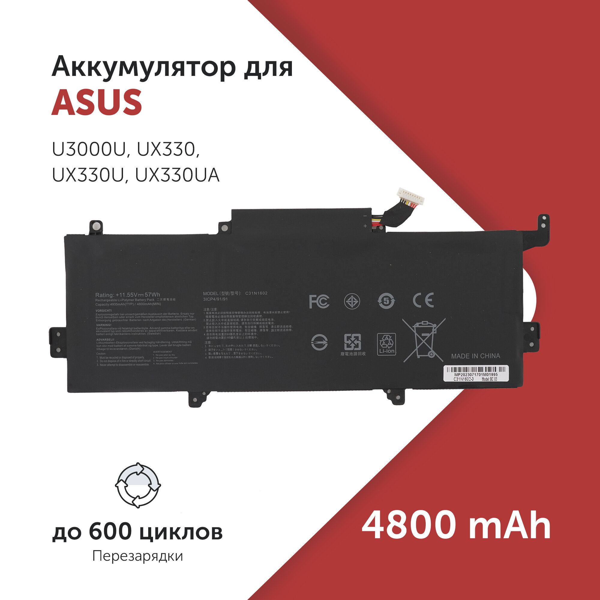 Аккумулятор 0B200-02090000 для ноутбука Asus Zenbook U3000U / UX330 4800 мА·ч интересное: