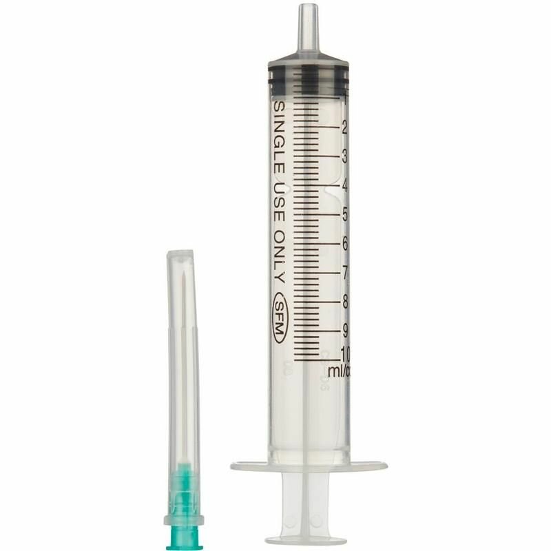Шприц 10 мл. трехкомпонентный одноразовый, стерильный с надетой иглой 0,8 мм x 40 мм - 21G SFM, Германия, 100 штук