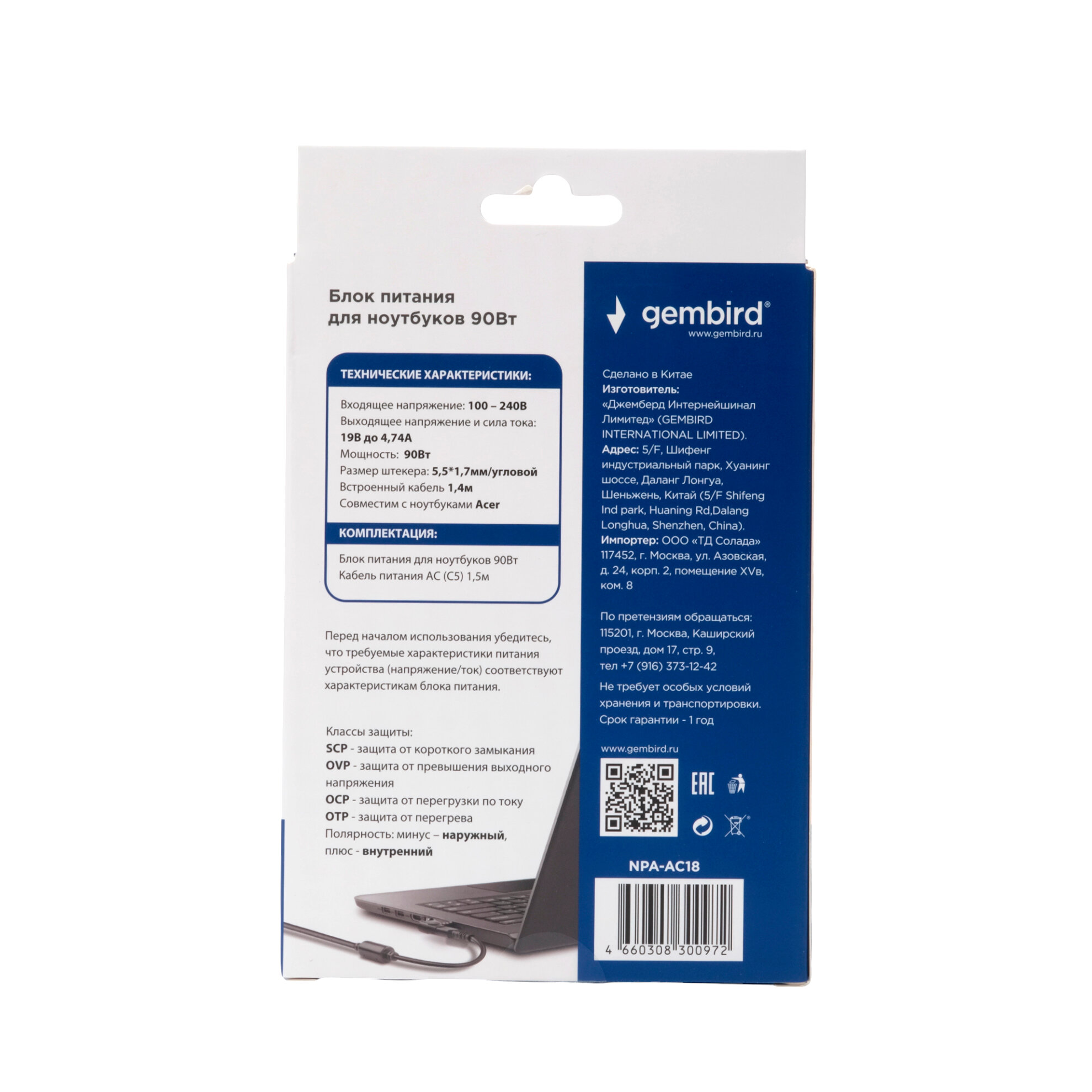 Блок питания Gembird для ноутбуков Acer 19В/4,74А 90Вт 1 штекер 5,5х1,7мм интересное: