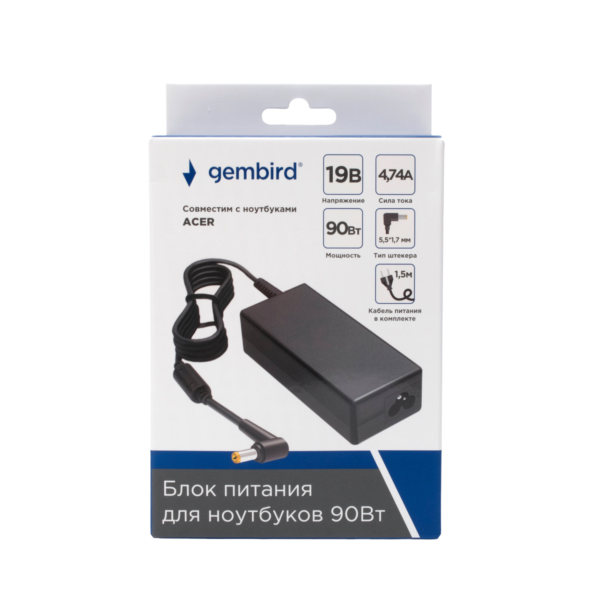 Купить Блок питания Gembird для ноутбуков Acer 19В/4,74А 90Вт 1 штекер 5,5х1,7мм
