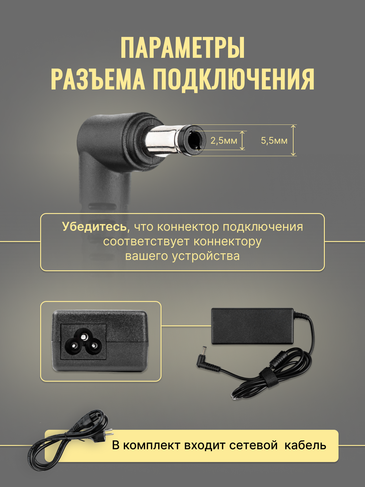 Купить Зарядка FixitOn 5,5x2,5mm 19V 65W для ASUS X54, K53, Lenovo G580, B570e, G780 и др