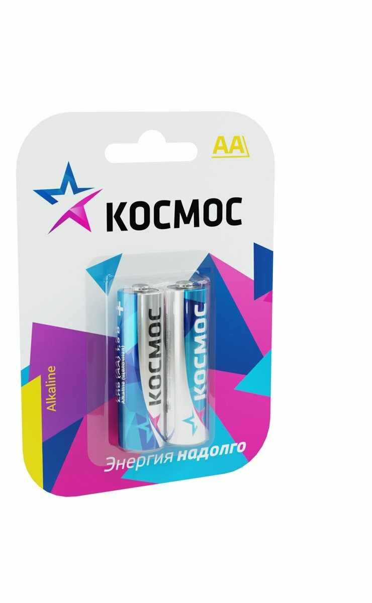 Батарейки АА пальчиковые Космос, алкалиновые 2 шт в одном блистере, LR06