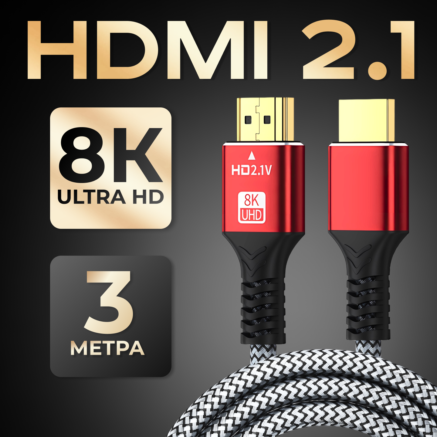 Купить Кабель HDMI 2.1, 8K 60 Гц / 4K 120 Гц, шнур для телевизора, приставки, 48 Гбит/с, 3 метра