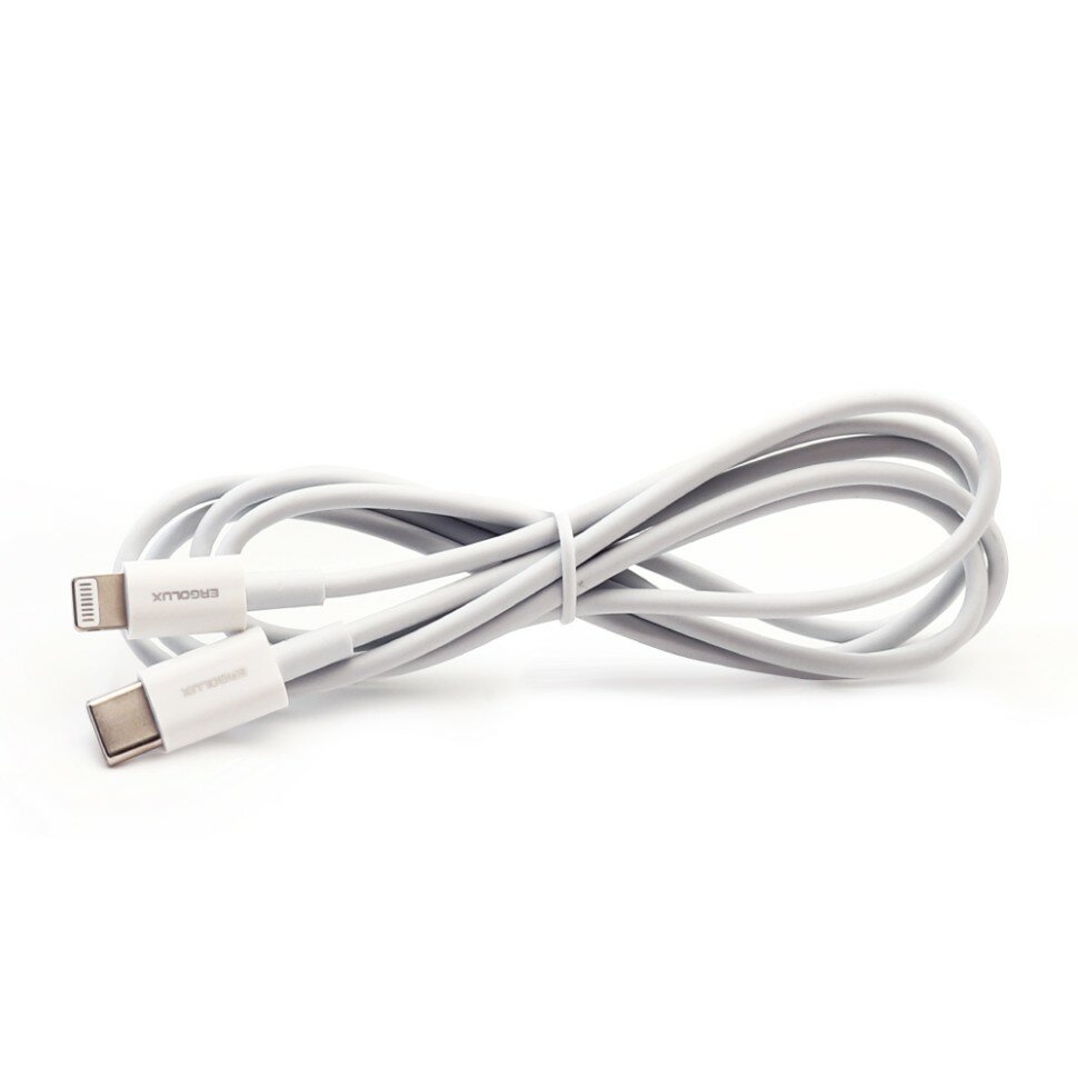 Купить Кабель Type C-Lightning ELX-CDC04-C01 (3А, 1,2м, Белый, Зарядка+Передача данных, Коробка) ERGOLUX