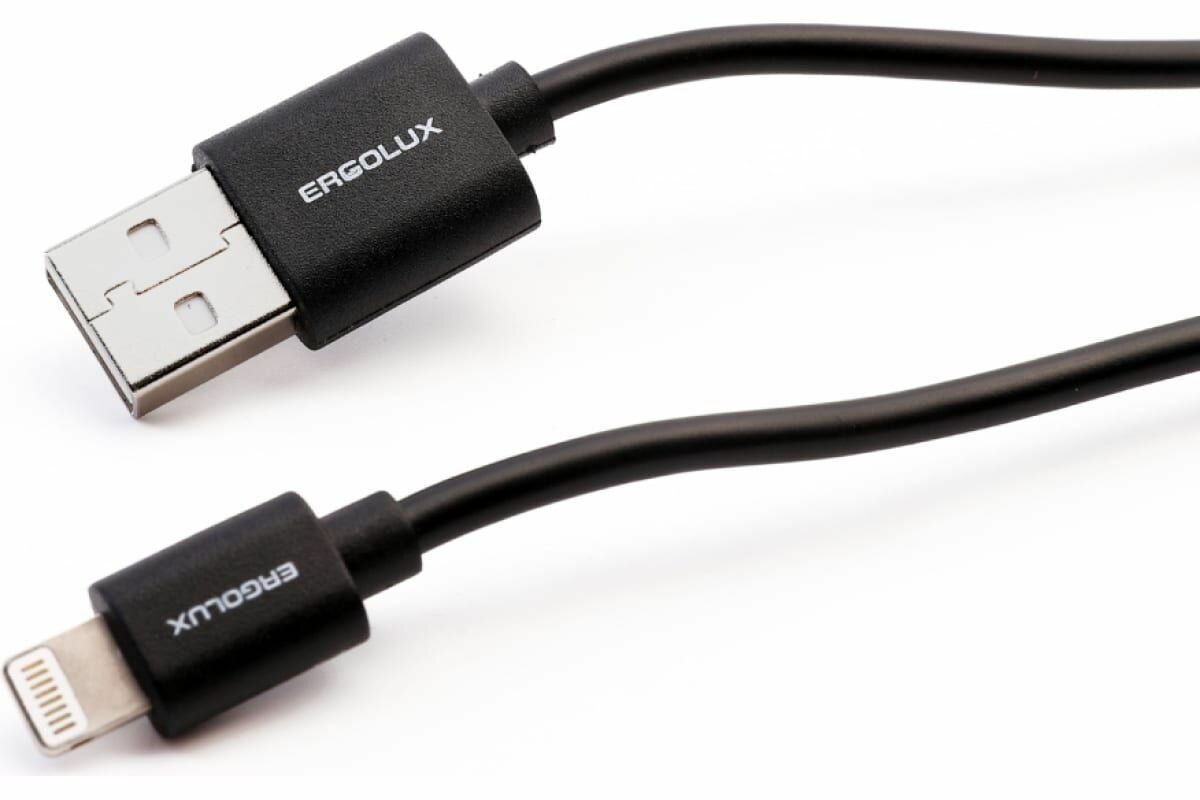 Кабель зарядки ERGOLUX USB-Lightning 2A, 1 метр, черный, передача данных