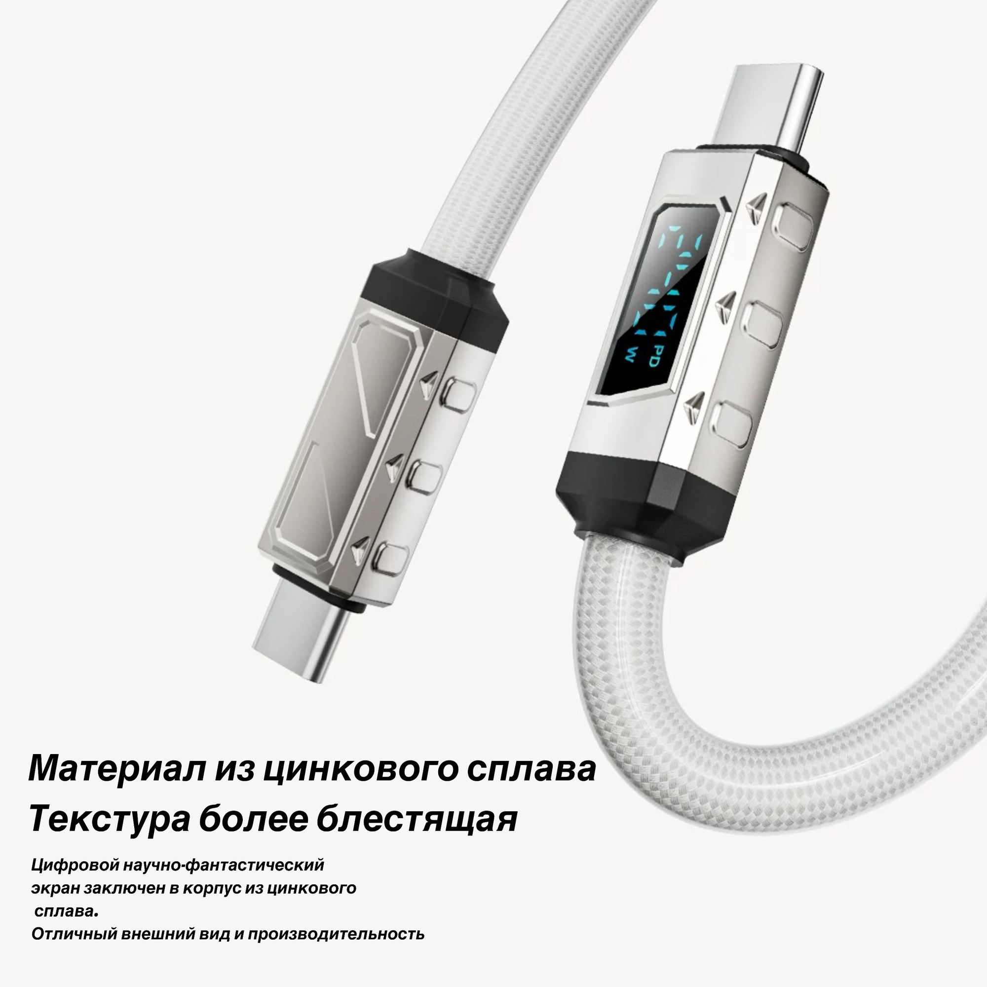 Кабель с дисплеем для быстрой зарядки и передачи данных Type-C - Type-C, цвет белый. интересное: