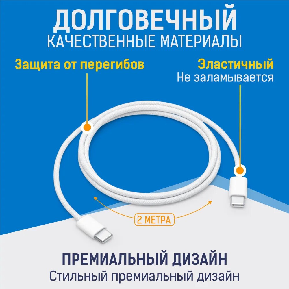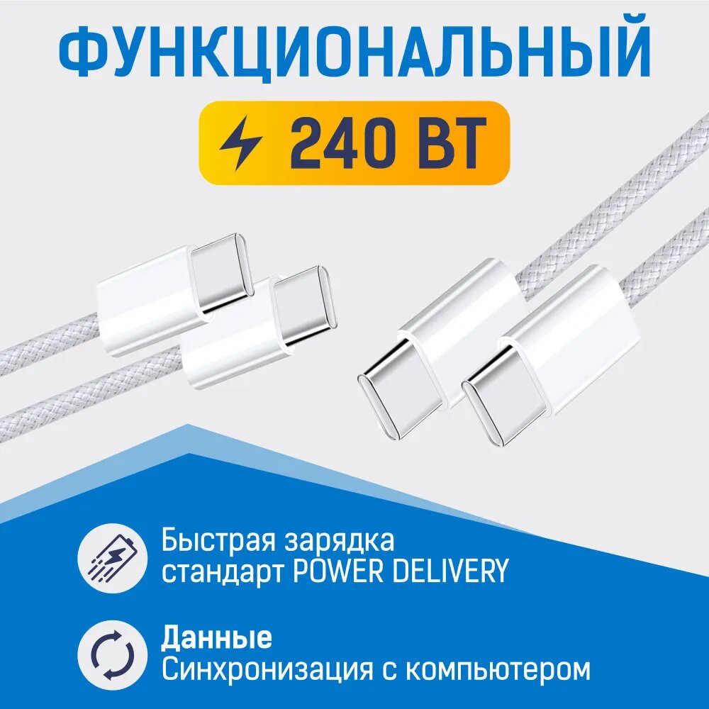Кабель Type-C - Type-C, универсальный, 240W, 2метра, для IOS, Android, MacBook интересное: