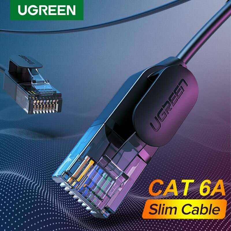 Купить Кабель UGREEN NW122 (70654) CAT 6A Pure Copper Ethernet Cable. Диаметр 2.8. Длина: 5м. Цвет: черный