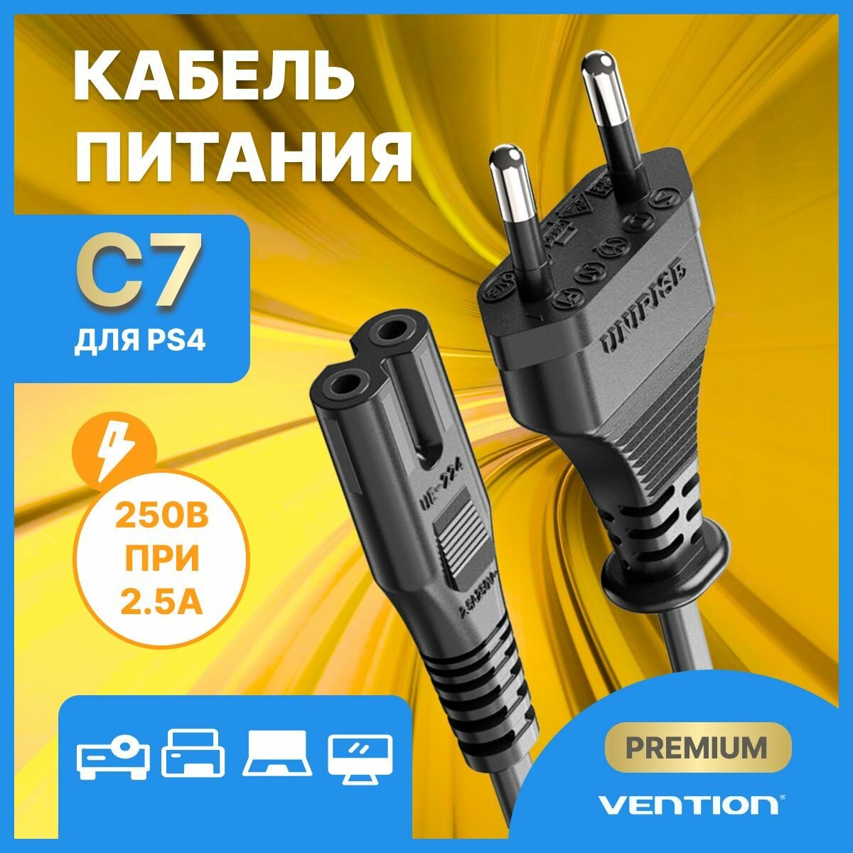 Купить Кабель питания C7 для PS 4, монитора, Vention провод для принтера, ламп и т. д арт. ZCLBAC