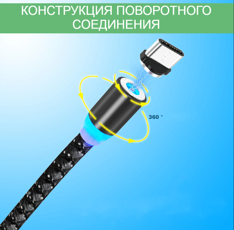 Магнитный USB-кабель 3 в 1 с тремя насадками Lightning, micro USB, Type C , серебристый интересное: