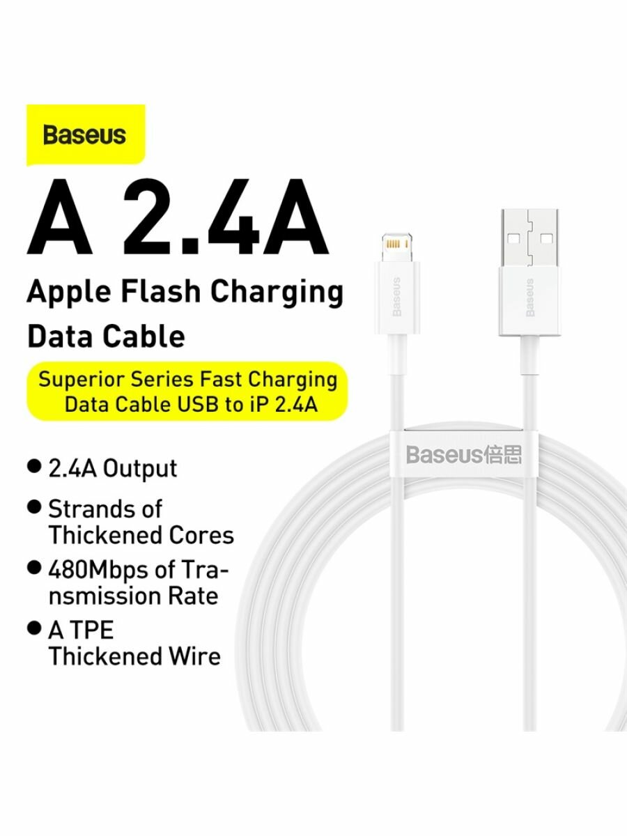 Кабель Baseus CALYS-B02 Superior Series Fast Charging Data Cable USB to Lightning 2.4A 1.5m White интересное: