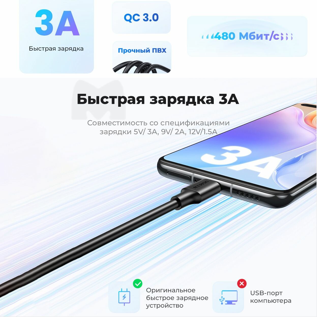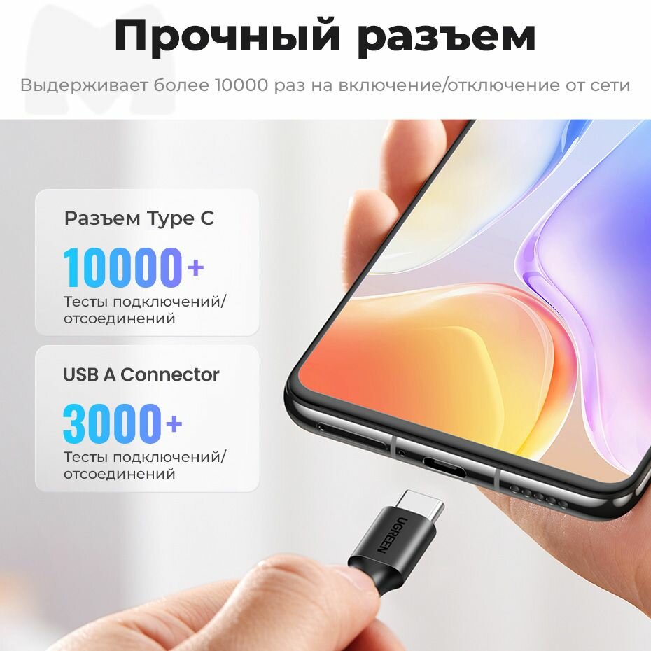 СохранитьКабель для быстрой зарядки и передачи данных UGREEN US287 / USB-A на USB-C / Быстрая зарядка 3A / Длина 1м / цвет черный (60116) интересное: