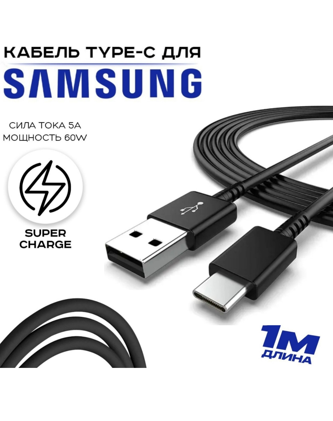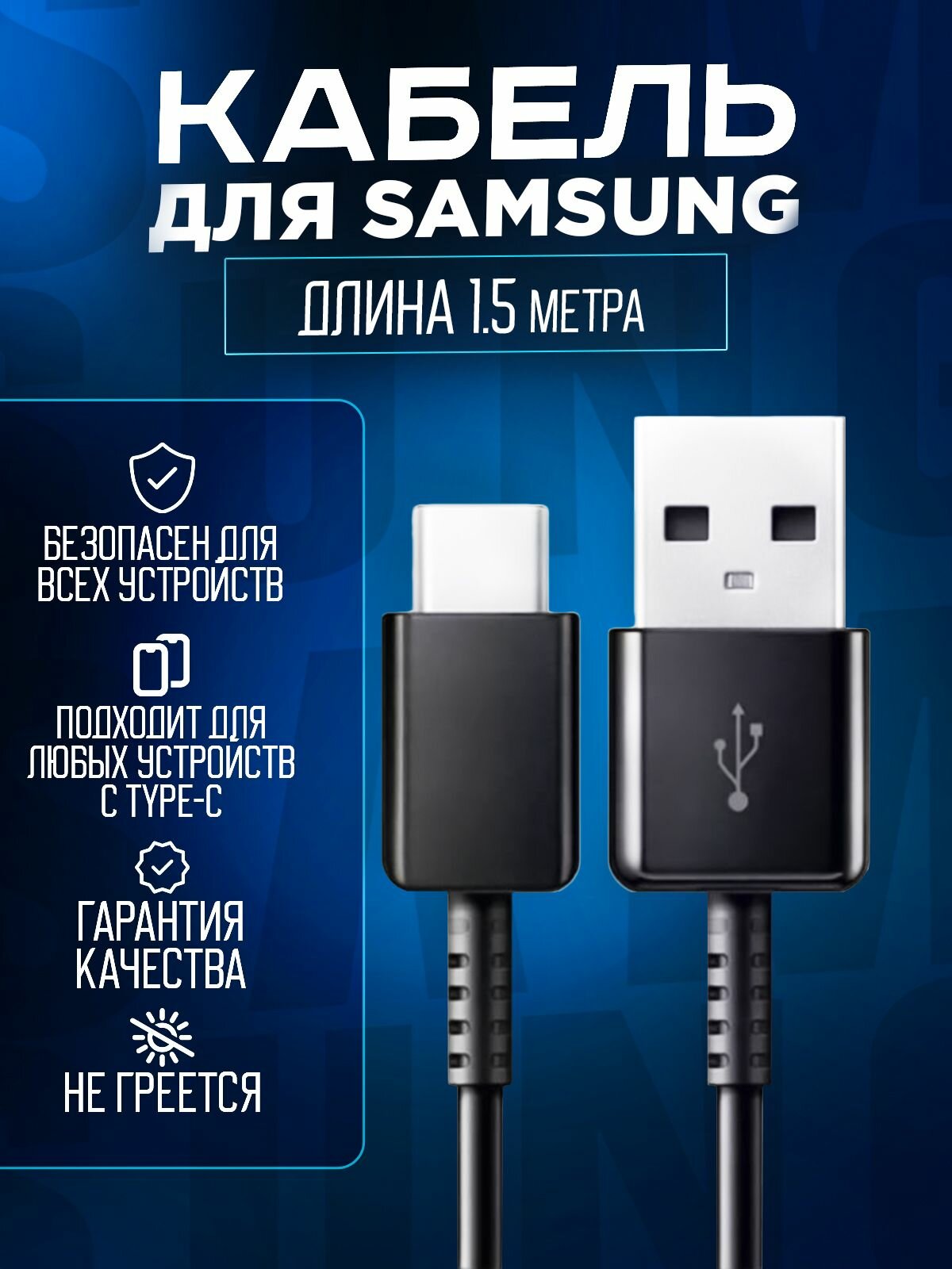 Кабель USB 2.0 Type-A/ USB Type-C для Samsung/ 3A 1.5м, черный интересное: