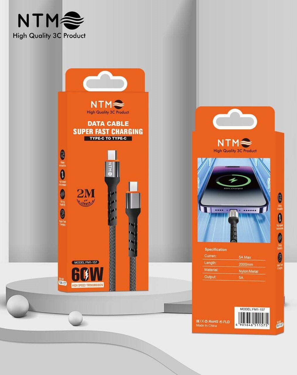 Купить Кабель 2 м USB-С с быстрой зарядкой PD 60 Вт 5А нейлон