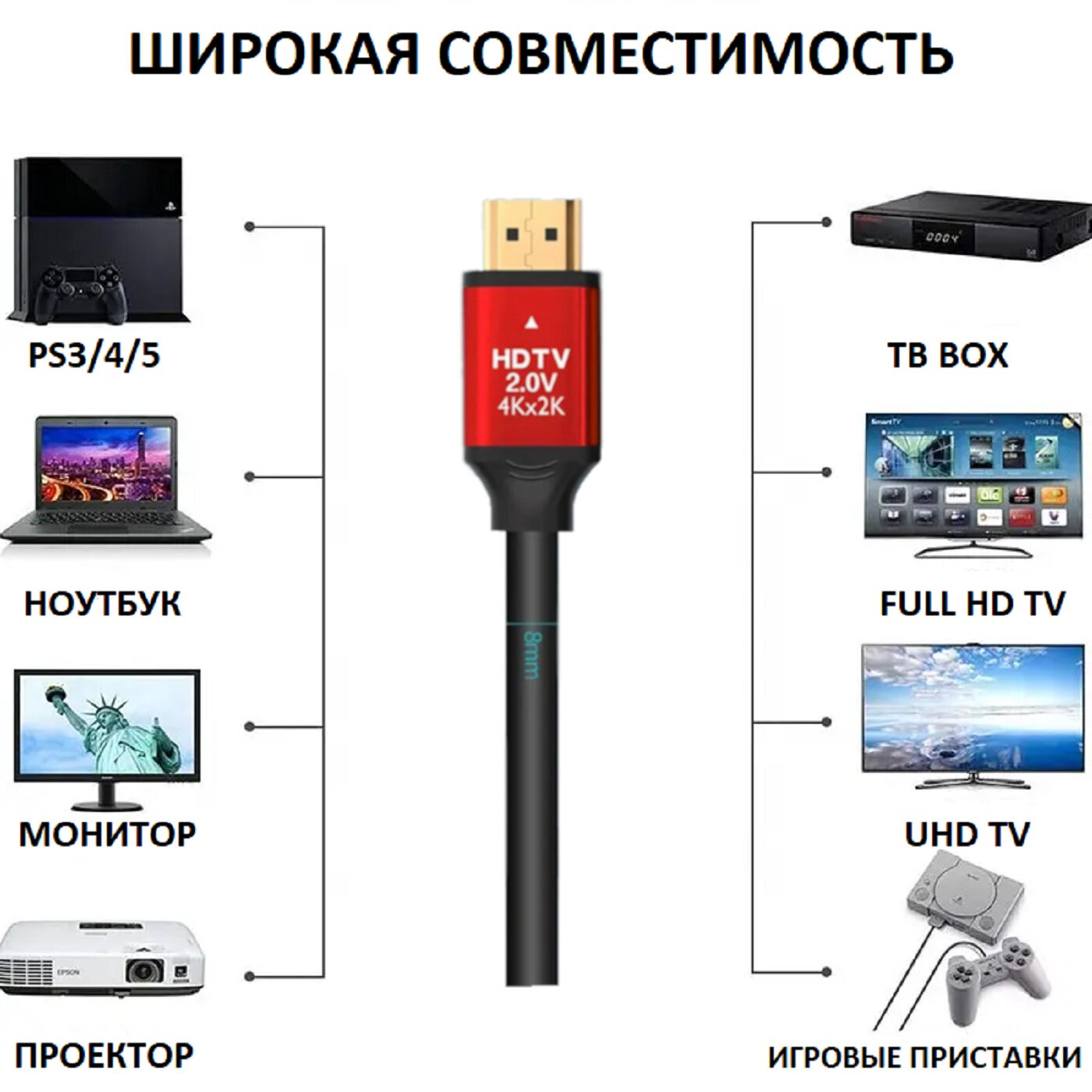Купить HDMI 2.0 кабель для телевизора и проектора 5 м