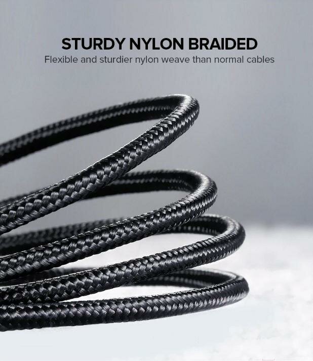 Кабель UGREEN US290 (60146) USB-A 2.0 to Micro-USB Cable Nickel Plating Alu Braid (1 метр) чёрный/серый