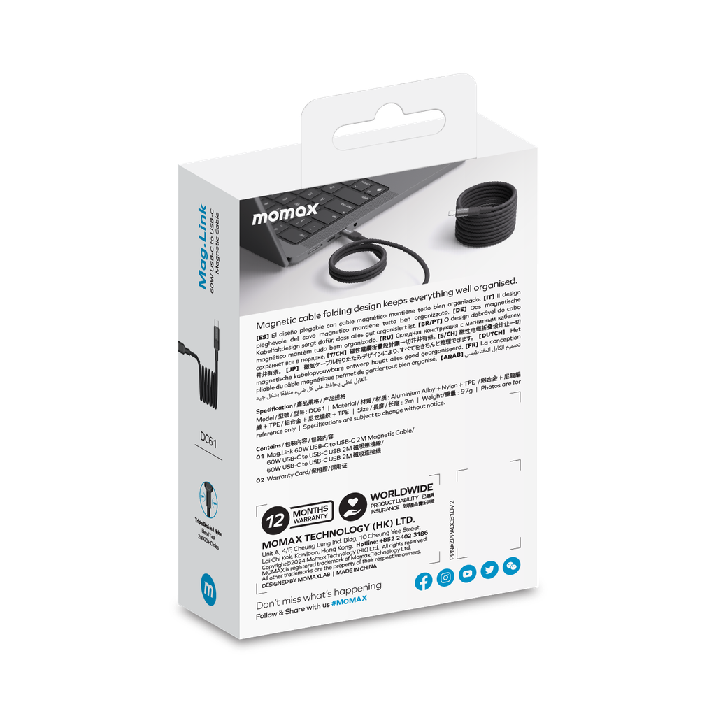 Купить Кабель Momax Mag.Link Magnetic DC61D USB-C to USB-C 60W, 2,0м, Black