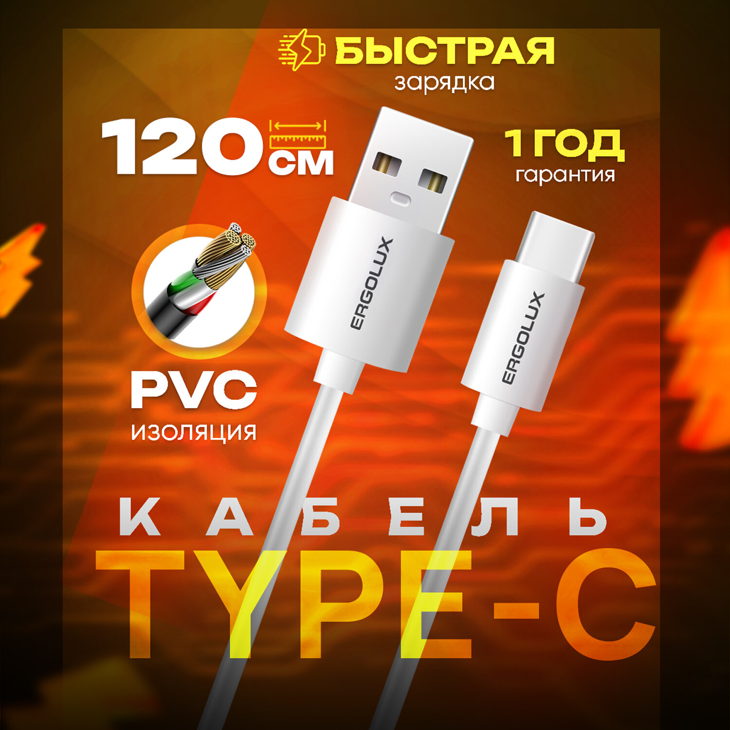 Кабель для зарядки ERGOLUX ELX-CDC02-C01, USB-Type C, длина 1.2 м, белый интересное: