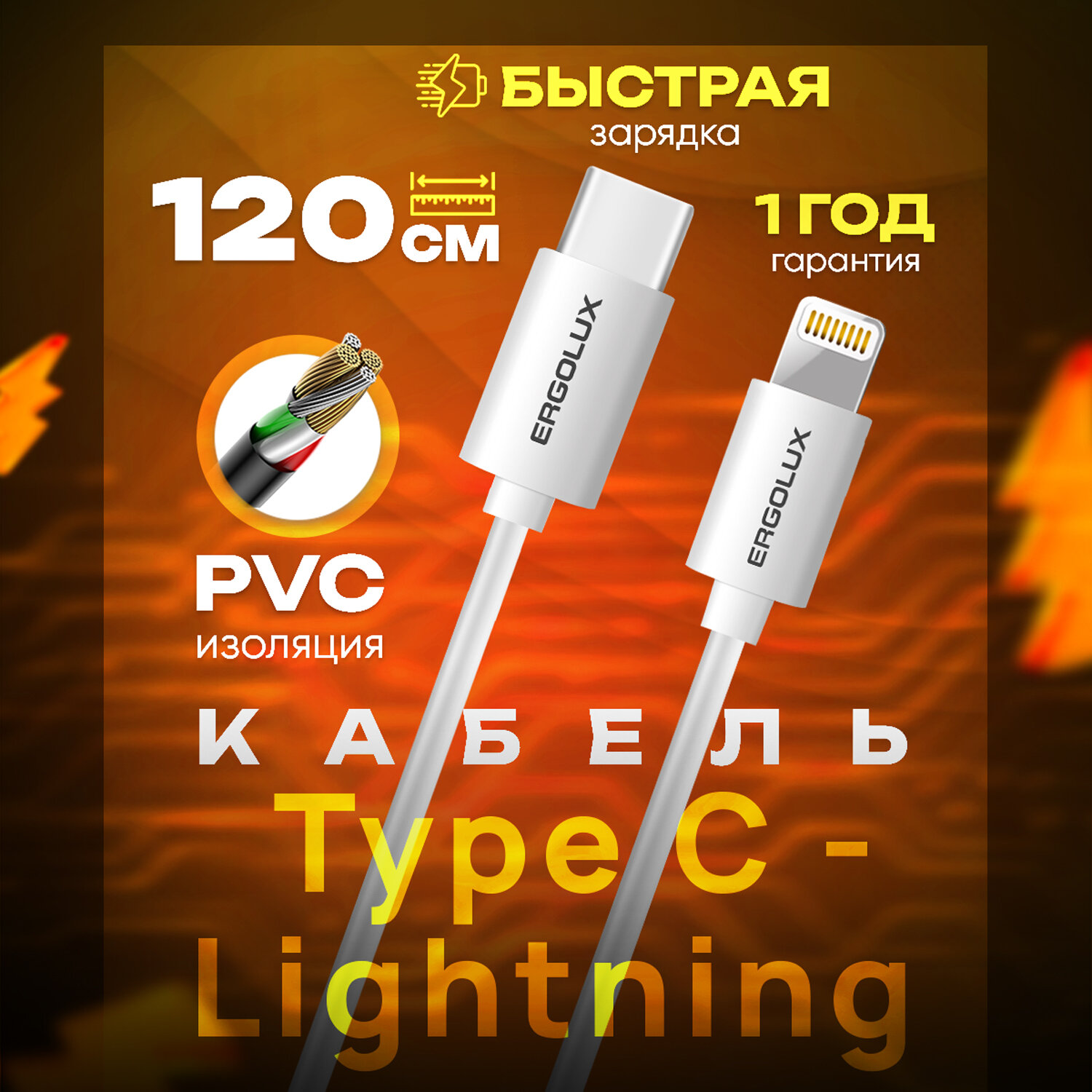 Кабель Type C-Lightning ERGOLUX ELX-CDC04-C01 интересное: